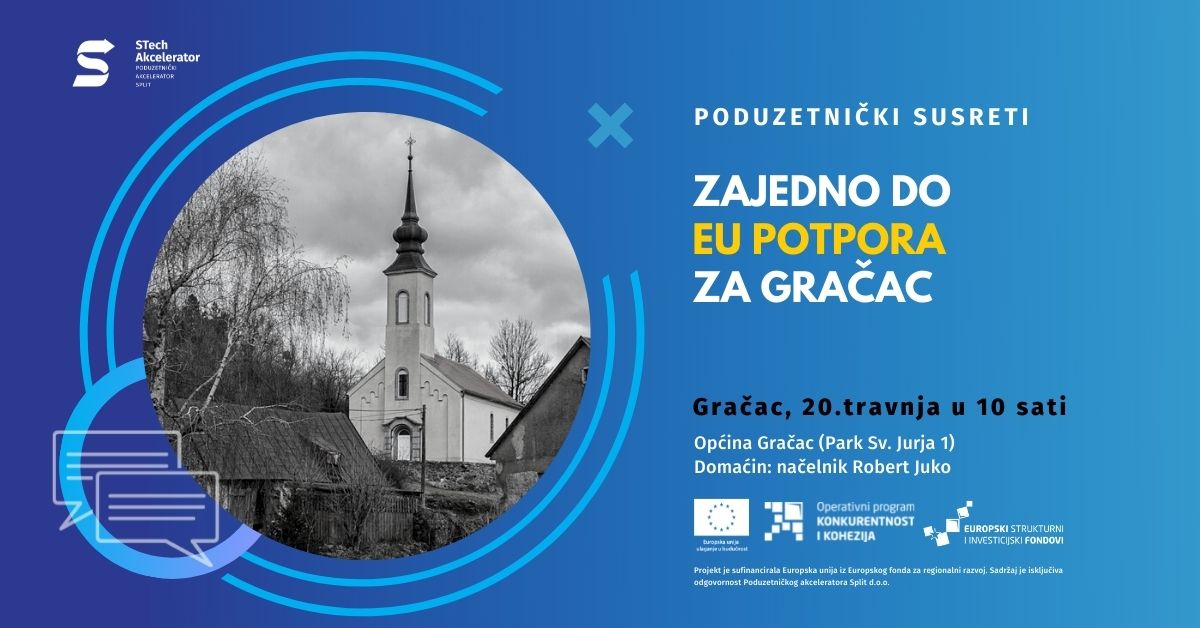 Prošle godine je, naime, započelo novo sedmogodišnje razdoblje u kojemu će Hrvatskoj na raspolaganju biti 13,7 milijardi eura za „klasične“ fondove i dodatnih 9,3 milijarde eura iz Fonda za oporavak i otpornost. Stručnjaci iz Poduzetničkog akceleratora Split i UHY Savjetovanja će stanovnicima Općine Gračac sugerirati koji fondovi i projekti imaju šansu za bespovratna sredstava.